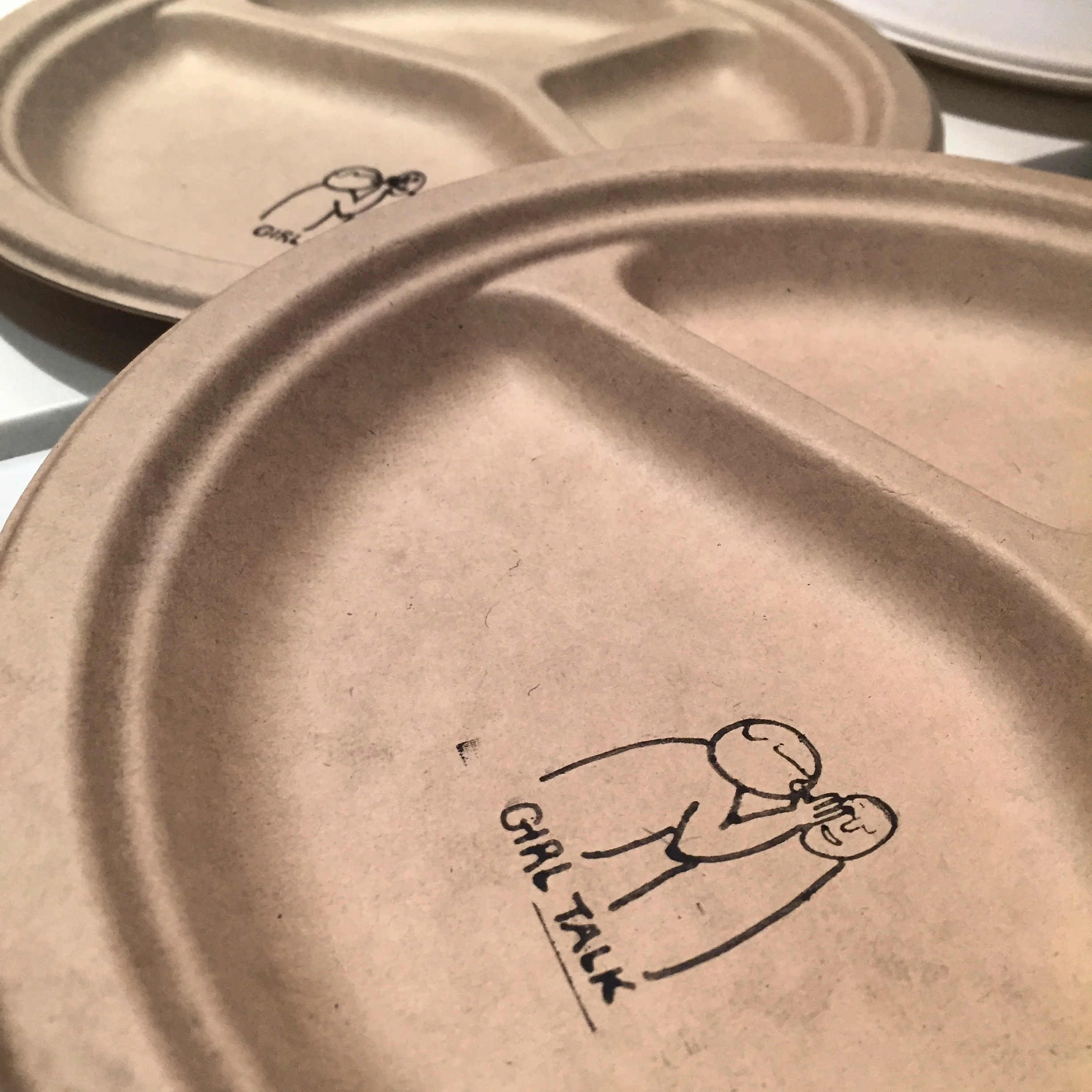 How about these compostables? We're working on supplying food trucks and dinner parties with compostable plates with a little conversation piece thrown in.